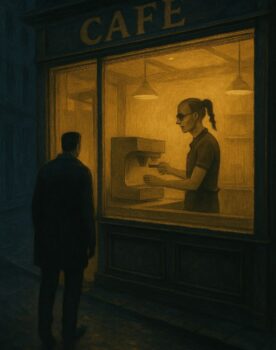 Ночь. Герой идёт по пустой улице. Впереди из витрины некоего одинокого заведения вытекал слабый янтарный свет. Заинтересовавшись, герой ускорил шаг и перед ним - кофейня. В ней единственным источником светом была лампа над стойкой баристы, за ...