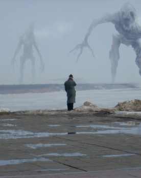 С той высоты, на которой его держал гигант, он видел что здания это, двигаются, подобно змее. После всего что он видел, его уже было сложно удивить. Они продолжали идти, всё ближе подходя к краю города. Вот уже они подошли к какому-то обрыву, и ...