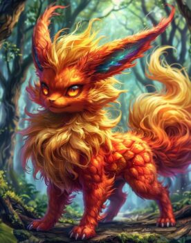 Флареон - покемон огненного типа.Внешний вид. Четвероногое млекопитающее с огненно-оранжевым мехом. Желтый воротник и пушок меха на голове. Кошачья морда. Длинные заячьи уши. Хвост в форме пламени.Особенности. Застенчивые и чувствительные покемоны. ...