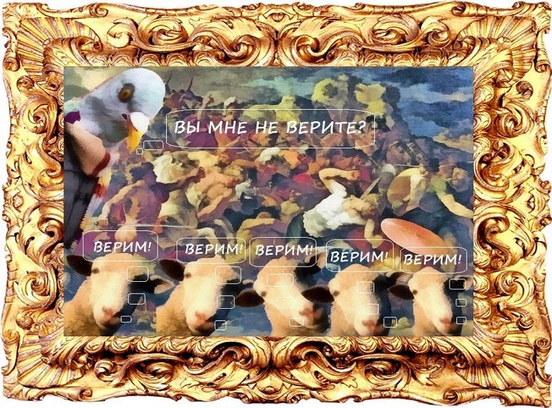 А если Бога нетА если Бога не было и нет Христа..?Кому молиться будем мы - тогда..?Куда попов, в таком количестве, девать..?Кресты, иконы, храмы - и куда..?Мой друг, всё просто в этом Мире...Заменим Бога на Священного Козла...Его ведь отрицать никто ...