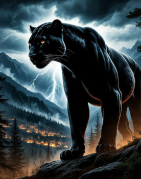 Сцена 3: Молнии:(Затерянная пещера высоко в Грозовых Пиках. В центре – ОГРОМНАЯ ПАНТЕРА. Это Дух Молний, один из Восьми Ключевых.)(Перед ним, в лучах мерцающего света, стоят Сешат, Карна и Дух-Мечник.)СЕШАТ: Великий Дух Молний. Мы пришли за... ...