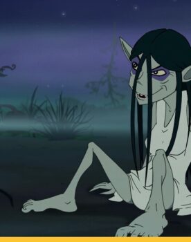Пока тролль, радуясь неожиданной удаче, топал по дороге, девочка постепенно приходила в себя и начала внимательно его осматривать. Сначала, когда почувствовала, как её кто-то поднимает и земля остаётся далеко внизу, сильно испугалась. Однако ...